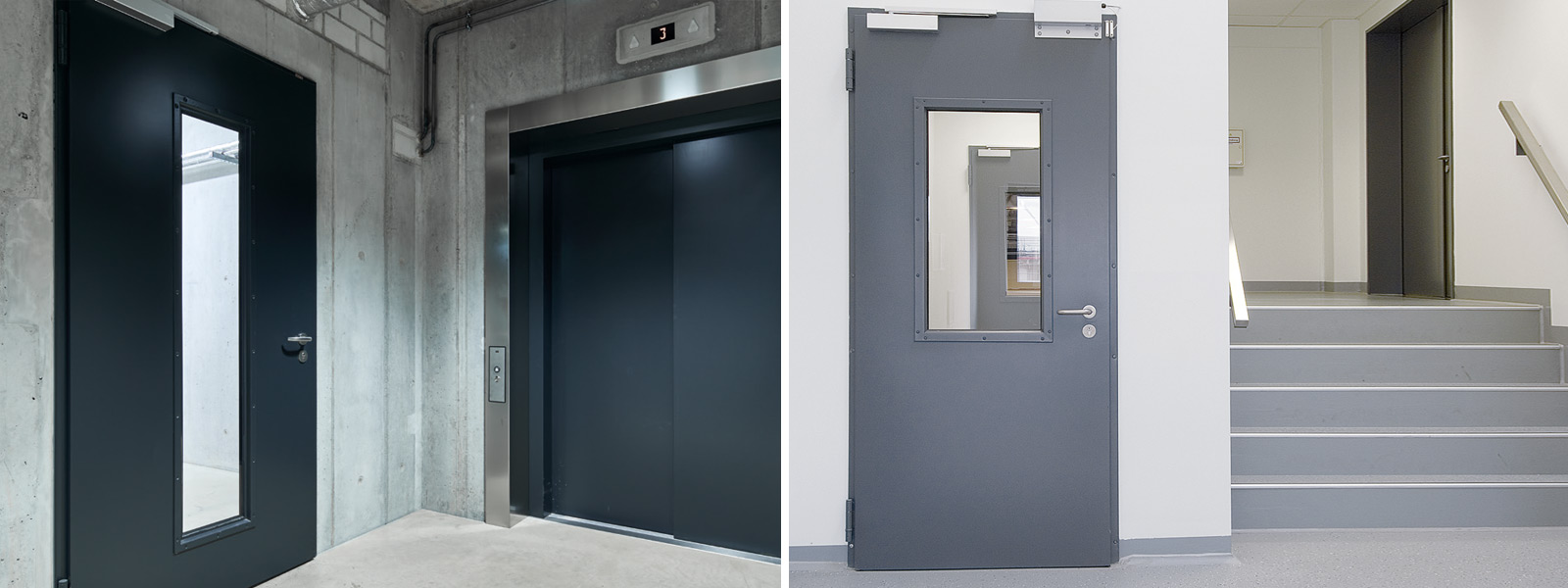 - Egy- és kétszárnyú kialakítású tűzgátló acél ajtóelemek bel- és kültéri beépítésre