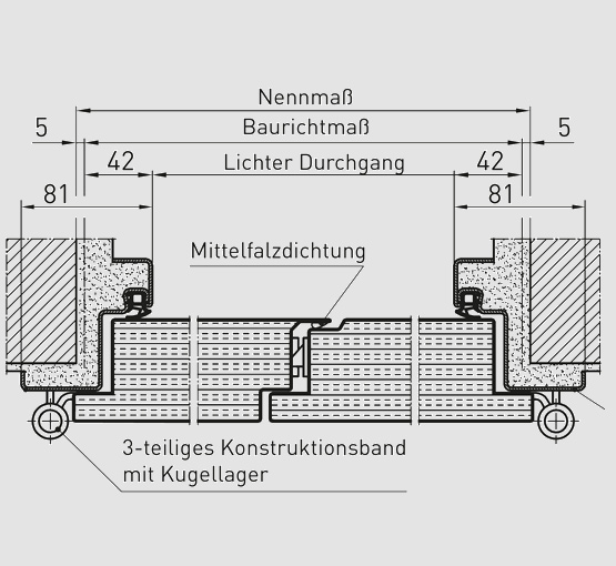 - Füstgátlás EN 1634-3 és DIN 18095 szerint, RS1 süllyedőküszöbbel vagy RS2 ráfutóküszöbbel és felső ajtócsukóval