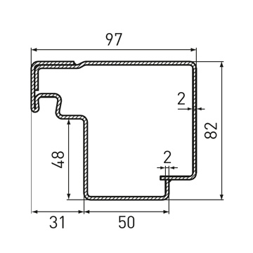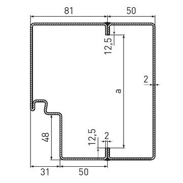 Standard kivitelben: saroktok gumitömítéssel, lemezvastagság: 2,0 mm, tükörszélesség: 50 mm, opcionálisan válaszfaltok, utólag szerelhető tok, profilszám: 2140B, ellentok vagy blokktok