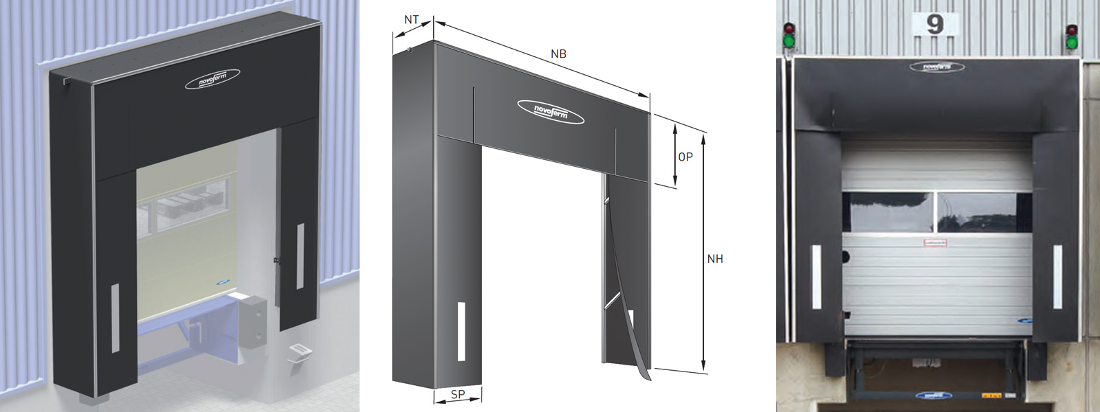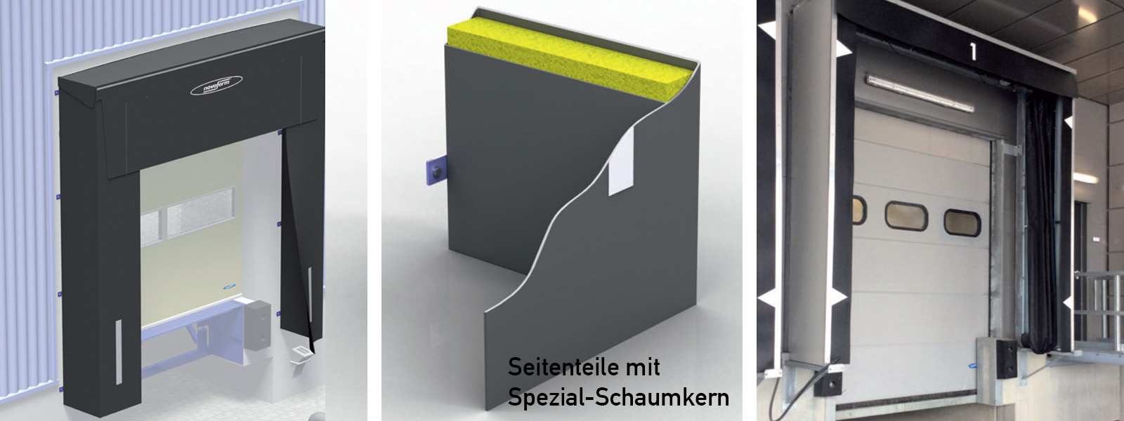 A rugalmas felépítménnyel rendelkező Novoferm kaputömítések tökéletes védelmet nyújtanak a szél, eső és léghuzat ellen. Tökéletesen kitöltik a kamion és az épület nyílása közötti rést, mellyel jelentős energiát takarítanak meg, és egyben védik a rakományt az esetleges sérülésektől. A belül elhelyezett esőelvezető a vizet célzottan oldalt vezeti el.