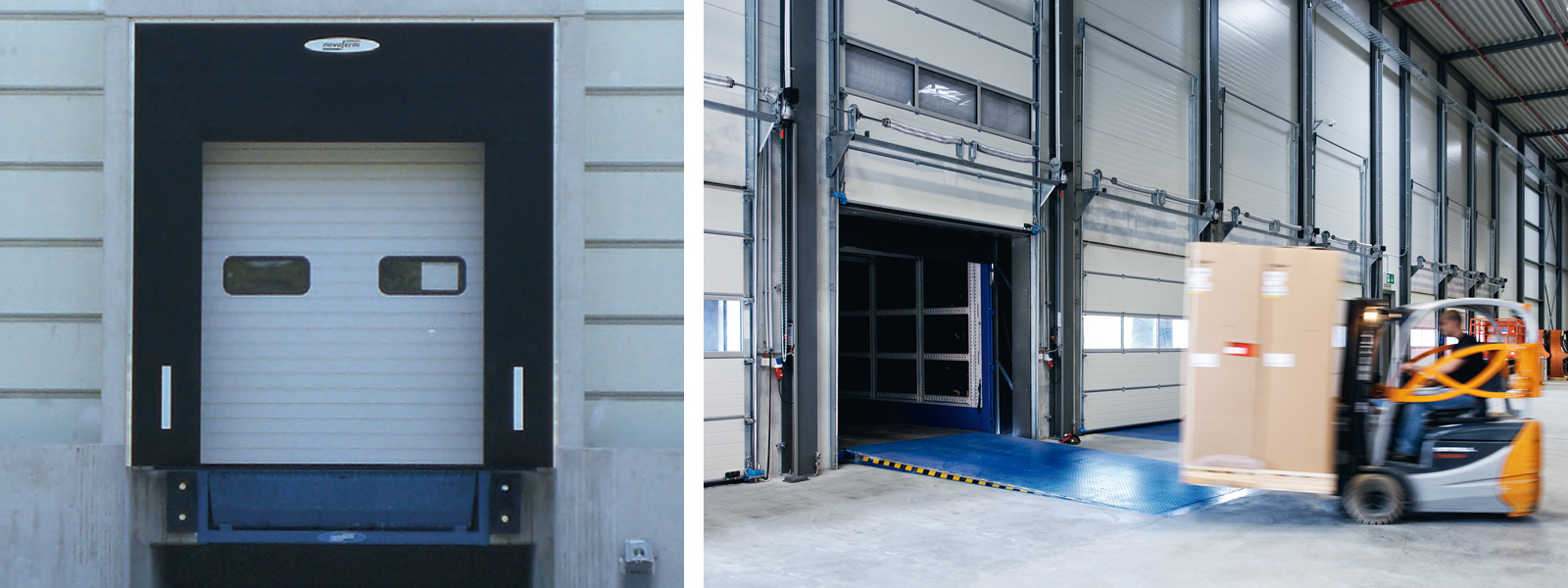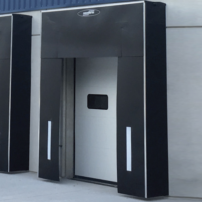 A benyomható habszivacs frontrésszel rendelkező Novoferm kaputömítések védenek a huzat, az eső és a szél ellen. Tökéletes tömítést képeznek a teherautó és az épület között, megakadályozzák az energiaveszteséget és védelmet nyújtanak a rakomány esetleges sérüléseivel szemben.