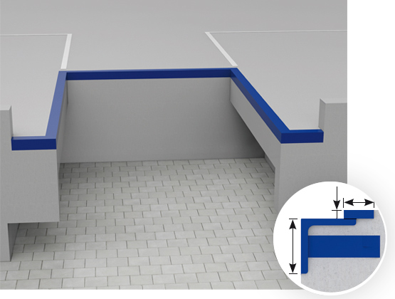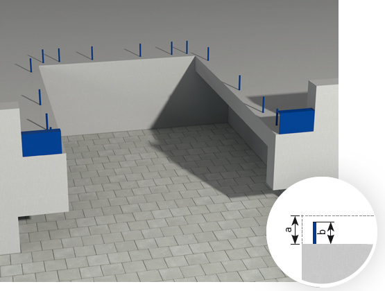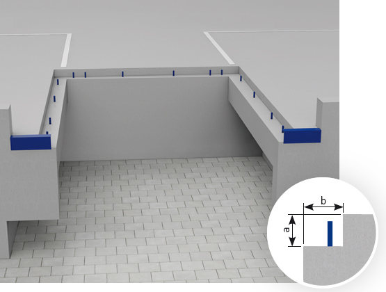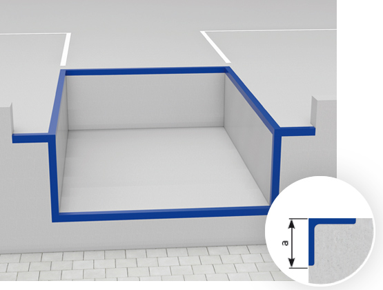 A kialakított hely védelmére a padlószinten három oldalon körbefutó szögacél élvédelem ajánlott.