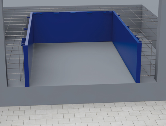 Ebben a változatban a rakodóhíd kialakítása olyan, mint egy három oldaláról zárt doboz. Ezt a talajhoz rögzítik, a vasalathoz csatlakoztatják, majd zsaluzóként használják.