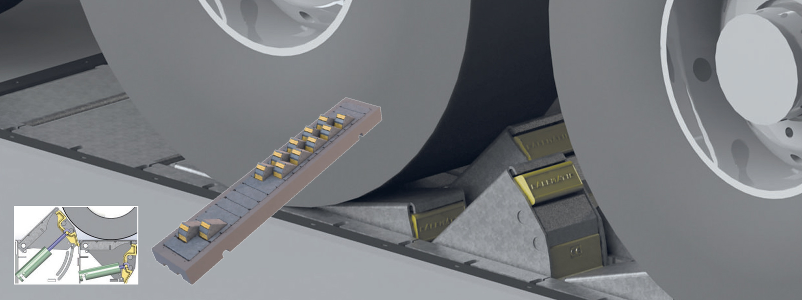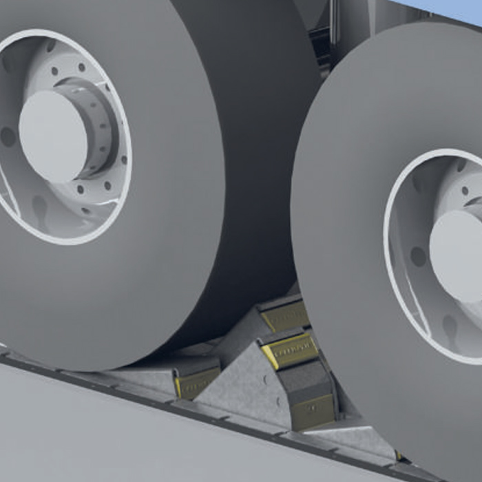 A kerékékek biztosítják a járművet, hogy az stabilan álljon a rakodóegység előtt. A hagyományos kerékék biztosítása azonban korlátozott.