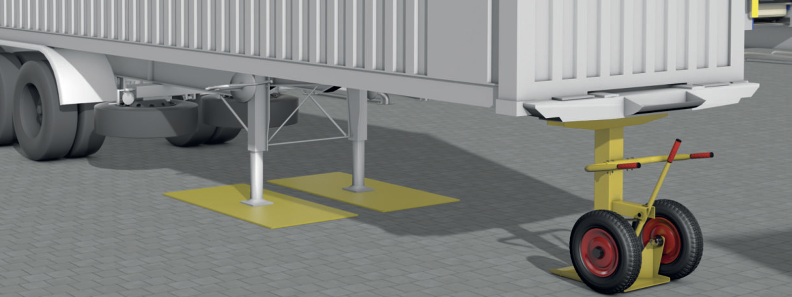 A Novo Safety Jack növeli a biztonságot a legfeljebb 40 tonna össztömegű pótkocsik / félpótkocsik be- és kirakodásakor. A támasz hatékonyan megakadályozhatja a félpótkocsi felborulását, lezuhanását.