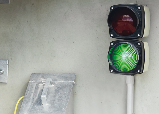 - lépés: A teherautó körülbelül 100 cm-rel van a rakodási pont előtt: a jelzőlámpa sárga színre vált. A sofőr még jobban odafigyel.